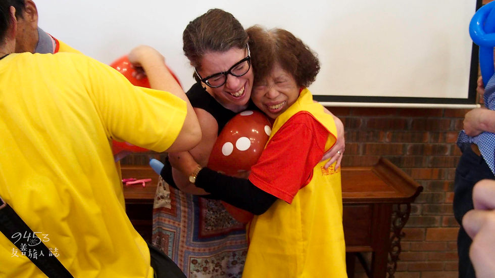 而刺激震撼的氣球「愛的抱爆」,邀請長輩們和當天一起參與旅程國際貴賓加入,來自各國的夥伴們跟爺爺、奶奶的一同用力擁抱、爆破氣球,火熱的爆破聲讓長輩們都熱血沸騰了起來,也讓現場的大家驚呼連連,而溫暖的擁抱,讓活動除了歡笑、有趣外,更打破了語言及國家的隔閡,拉近了彼此心與心之間的距離。