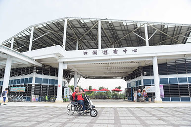 ■ 園區後方木棧道的坡度較陡,輪椅使用者前往時須留意;停車格旁的緩坡稍有破損,行走時必須要小心。